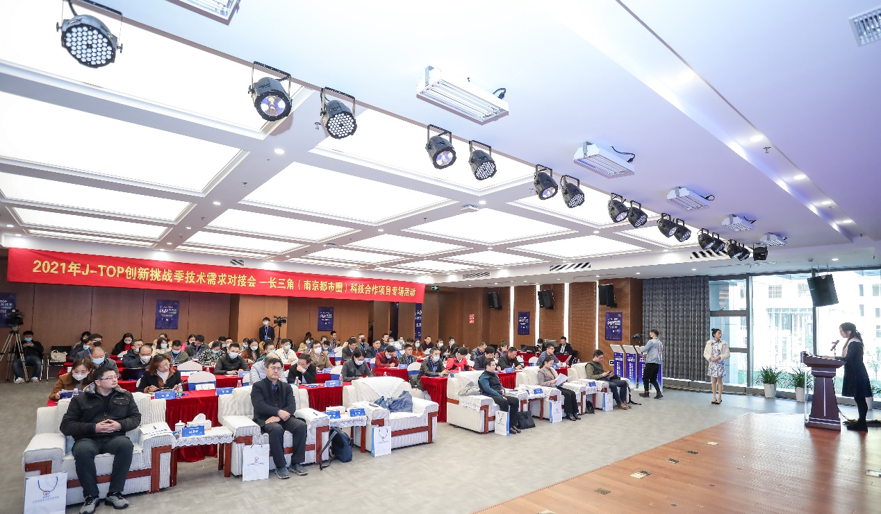 11月30日下午,2021年J-TOP创新挑战季技术需求对接会——长三角(南京都市圈)科技合作项目专场活动在南京市鼓楼区创新广场举办。活动由江苏省技术产权交易市场、江苏省科技资源统筹服务中心、江苏省高校科技发展中心和南京市科技局联合主办,聚焦南京都市圈及长三角企业技术创新难题,采取线上线下相结合的方式,开展产业化应用新技术、新成果的路演推介和对接洽谈。江苏省技术产权交易市场总经理肖莺、南京市科技局副局长吴瑕以及南京都市圈区域科技主管部门、高校院所、技术转移机构、企业代表及技术经理人共40余人参加了主会场活动。